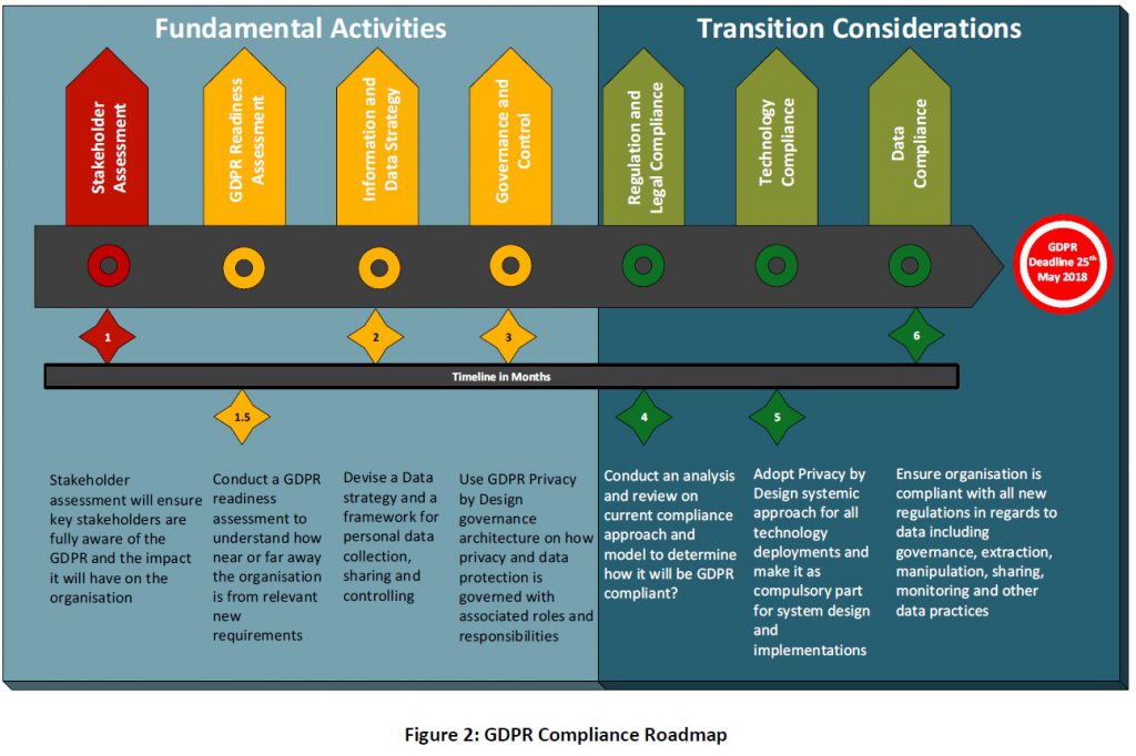 We have a dedicated team of risk, privacy and compliance professionals, with thorough expertise in leading Risk and privacy programs across small, medium, large scale and complex organisations. The following figure depicts the roadmap for successful adoption of GDPR in Australian organisations and businesses.