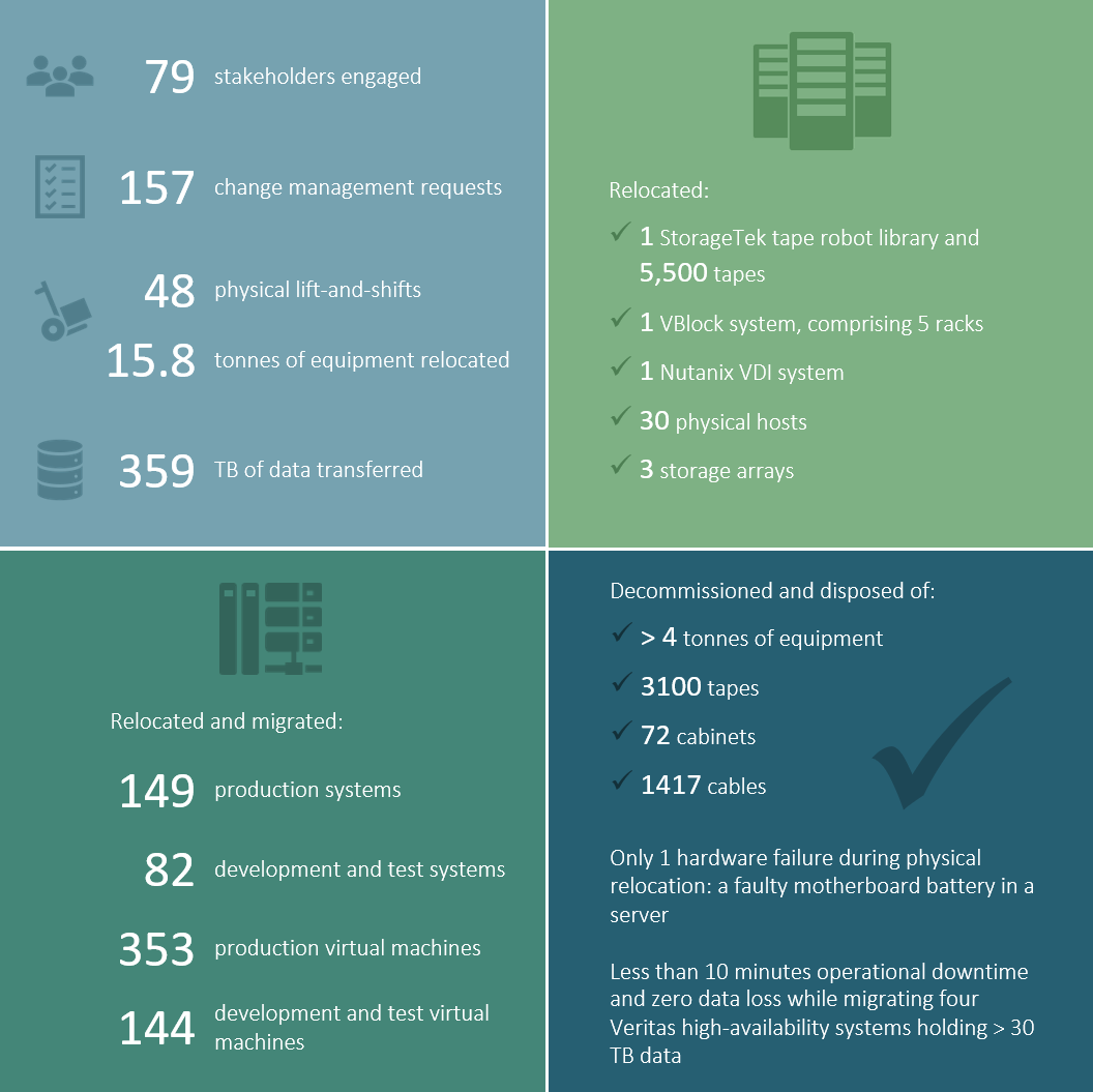 ICT services capability and extensive experience with data centre projects saw Frame win the competitive tender and be awarded the contract to develop the relocation strategy and migration plan, then provide technical leadership and management of the relocation and migration.